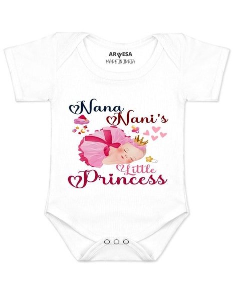 Buy now Infants Typographic Print Romper byARVESAonly through BabyRompers.in – Get The Best Deals & Offers!