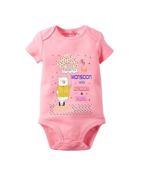 Buy now Graphic Print Round-Neck Onesies byBABYWISHonly through BabyRompers.in – Get The Best Deals & Offers!