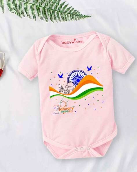 Buy now Typographic Print Round-Neck Romper byBABYWISHonly through BabyRompers.in – Get The Best Deals & Offers!