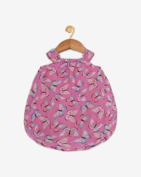 Buy now Butterfly Print Square Neck Romper Dress byCREATIVE KID’Sonly through BabyRompers.in – Get The Best Deals & Offers!