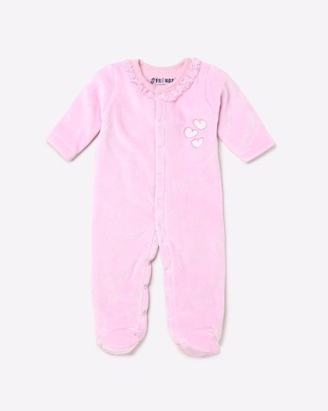 Buy now Rompers with Lace Ruffle Neckline byINF FRENDZonly through BabyRompers.in – Get The Best Deals & Offers!