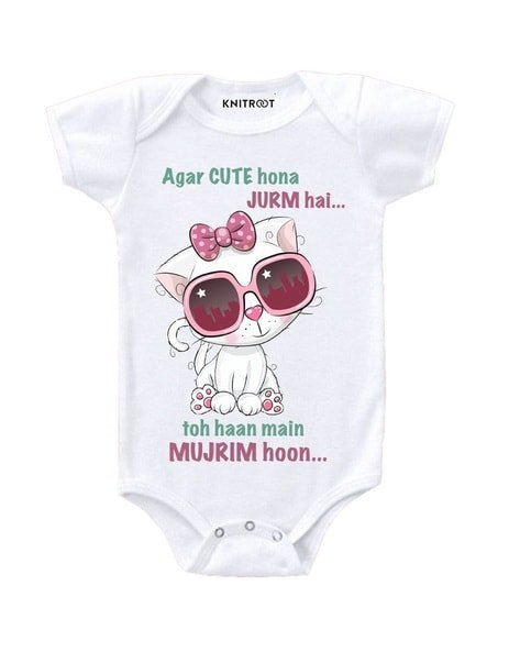 Buy now Cartoon Print Round-Neck Romper byKNITROOTonly through BabyRompers.in – Get The Best Deals & Offers!