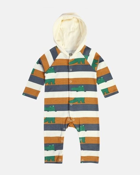 Buy now Infants Striped Hooded Romper byMiniklubonly through BabyRompers.in – Get The Best Deals & Offers!