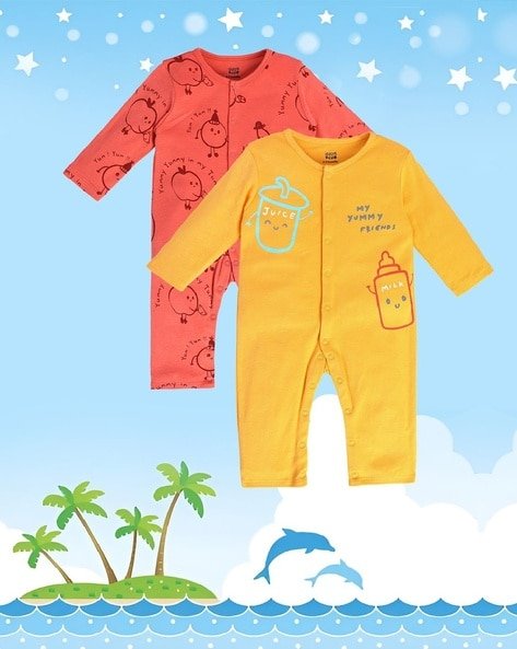 Buy now Pack of 2 Graphic Print Regular Fit Rompers byMiniklubonly through BabyRompers.in – Get The Best Deals & Offers!