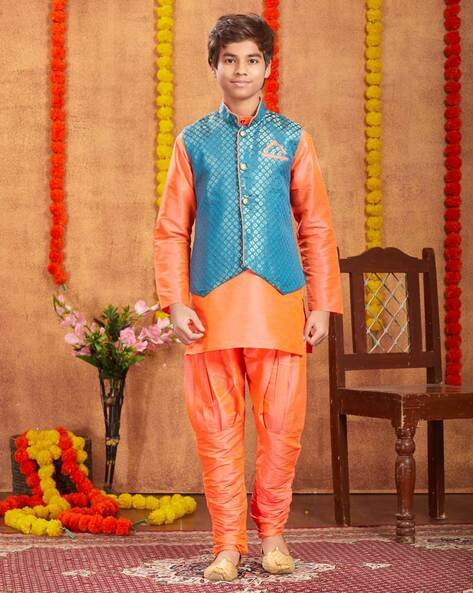 Buy Now Boys Mandarin-Collar Kurta Pyjama Set with Jacket only from BabyRompers.in Manufactured by MUHURATAM is the best choice for your search. Click to View the Live Offer and Updated Discounts.