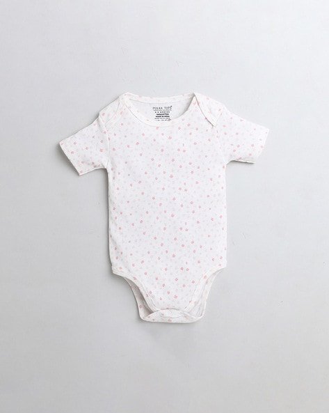 Buy now Micro Print Round-Neck Onesies byPOLKA TOTSonly through BabyRompers.in – Get The Best Deals & Offers!