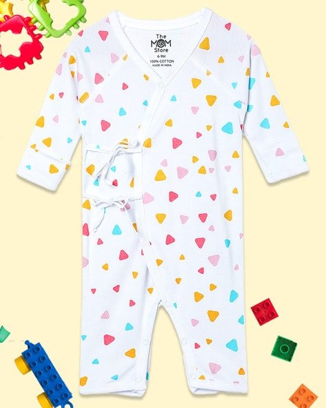 Buy now Logo Print Romper with Tie-Up byTHE MOM STOREonly through BabyRompers.in – Get The Best Deals & Offers!