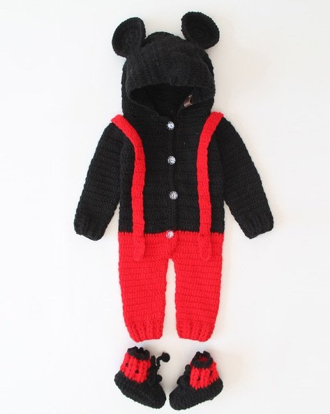 Woonie – Colourblock Hooded Rompers with Full Sleeves & Booties