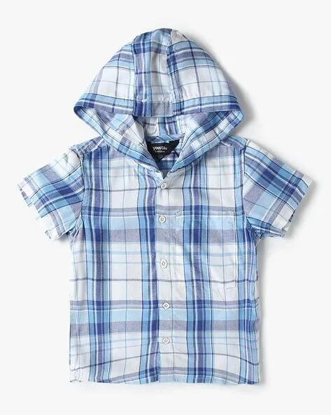 Yousta – Boys Checked Regular Fit Hooded Shirt